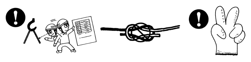 • 必ず手袋をして作業して下さい。素手では結束バンド、シージング、ロープ端末、ロープ切断面の素線等で怪我をする恐れがあります。